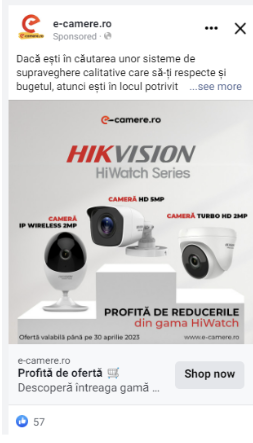 Pentru acest client, rezultate foarte bune a adus un ad dinamic în care promovăm o categorie de produse din site, de altfel cele mai vândute de-a lungul timpului.